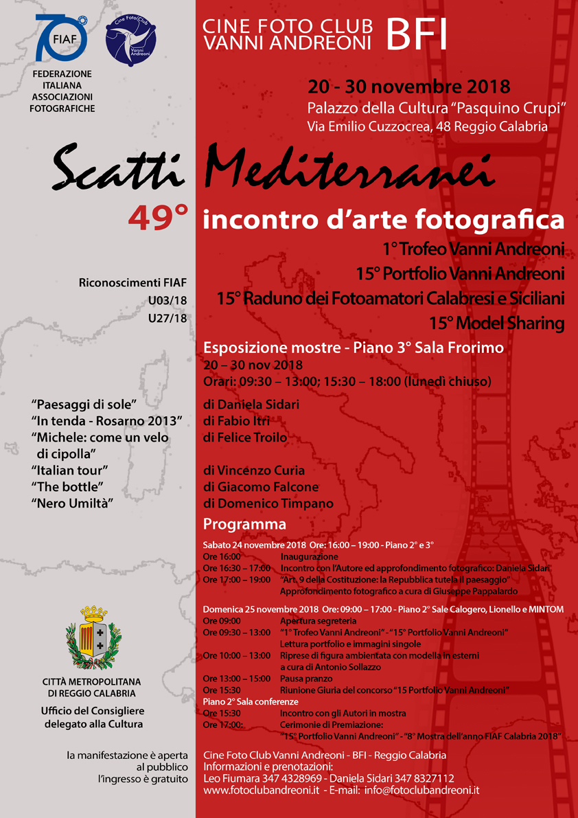 49 scatti mediterranei - Locandina https://archivio.cittametropolitana.rc.it/canali/cultura/notizie-e-avvisi/scatti-mediterranei-49deg-incontro-di-arte-fotografica/49-scatti-mediterranei-locandina-1-740kb-1.jpg/view https://archivio.cittametropolitana.rc.it/@@site-logo/LOGO_BIANCO.png 49 scatti mediterranei - Locandina Clicca per vedere l'immagine alle dimensioni originali… Dimensione: 739KB